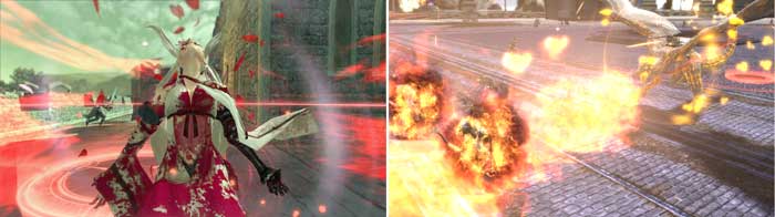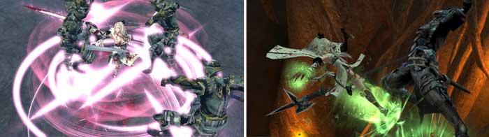 地上ではハイスピードの華麗な剣戟アクションが繰り広げられます。