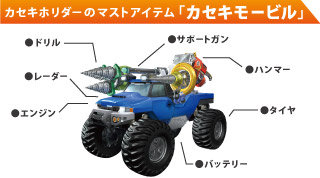 各種パーツをカスタマイズすることで、カセキモービルをパワーアップすることもできます。