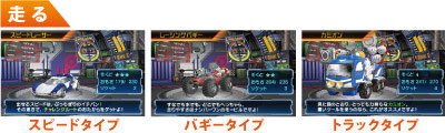 スピードタイプ、バギータイプ、トラックタイプなど、