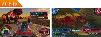 フィールドには、蘇った恐竜たちが野生化しており、遭遇するとバトルが始まります。